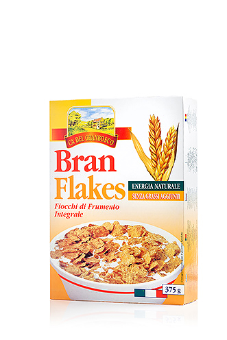 Fiocchi di cereali prodotti con farina di frumento integrale, ad alto contenuto di fibra, per una colazione sana ed equilibrata.