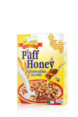 Chicchi di frumento soffiato ricoperti da gustoso miele, ideali per la colazione o lo spuntino goloso di tutta la famiglia.