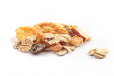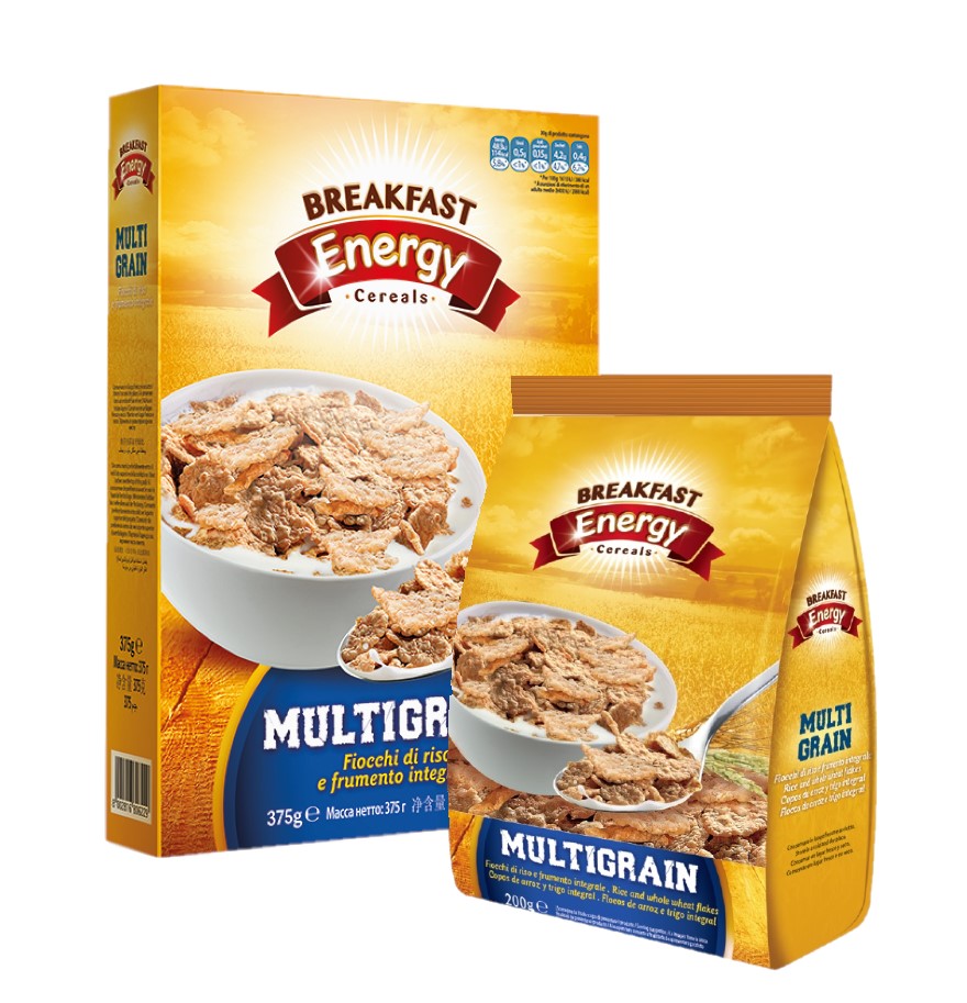 Fiocchi di cereali a base di frumento, segale, avena, orzo e mais, arricchiti da uva sultanina, arancia candita, mela e granella di nocciole: per una colazione sana ed equilibrata.
