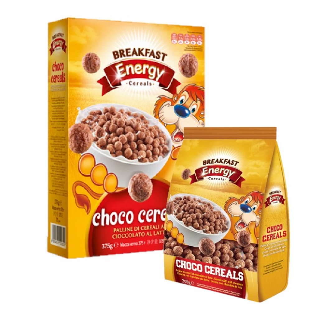 Croccanti palline di cereali, prodotte con farina di riso, mais e frumento e arricchite da goloso cioccolato al latte, per una colazione leggera e gustosa da offrire al tuo bambino.